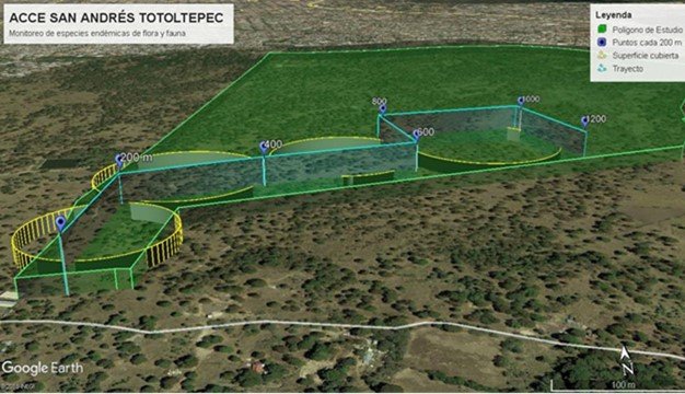 El proyecto tiene como objetivo identificar, evaluar y proteger las especies endémicas de flora y fauna presentes en el Área Comunitaria de Conservación Ecológica (ACCE) de San Andrés Totoltepec, Ciudad de México. Ante la pérdida de biodiversidad y la presión de actividades humanas en el Suelo de Conservación de la capital, el monitoreo es fundamental para desarrollar planes de conservación efectivos.